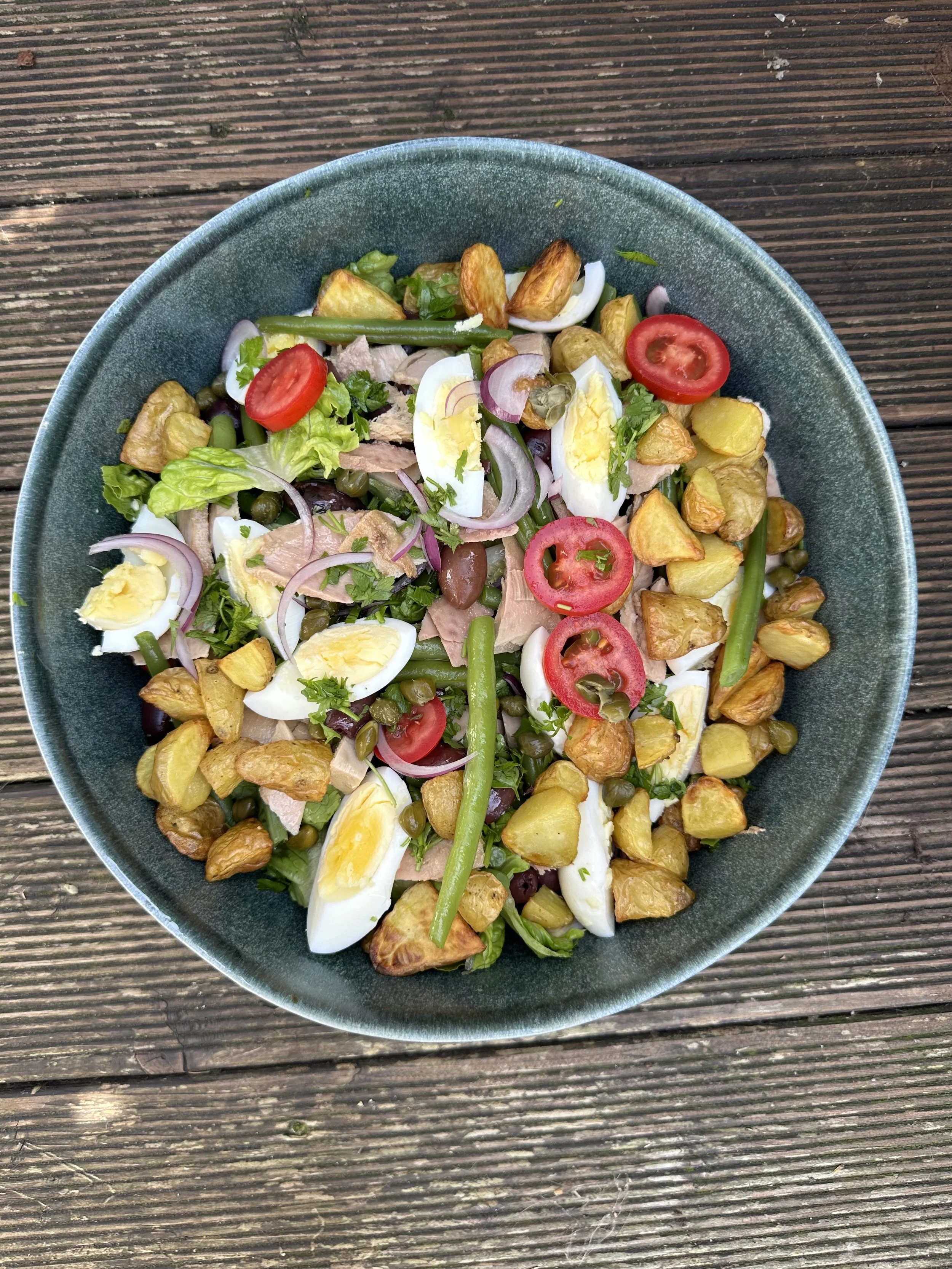 Ich habe„Salade Niçoise“ gemacht - ein köstlicher, französischer Klassiker! Durch die vielseitige Kombination aus hochwertigen Proteinen, Fett und Ballaststoffen macht der Salat toll satt und lässt sich auch sehr leicht variieren.