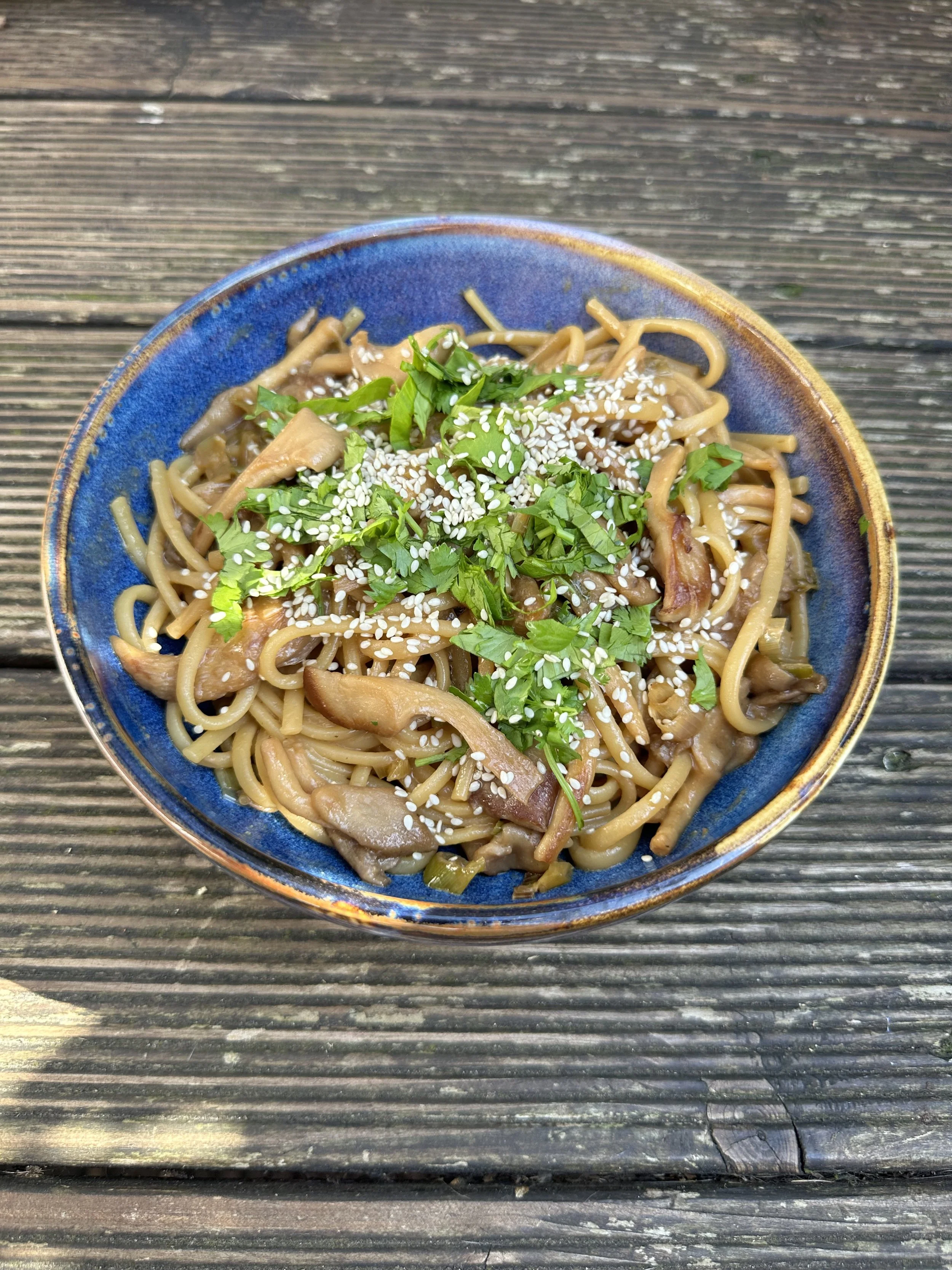 Spaghetti in Misobutter mit Austernpilzen und Sesam